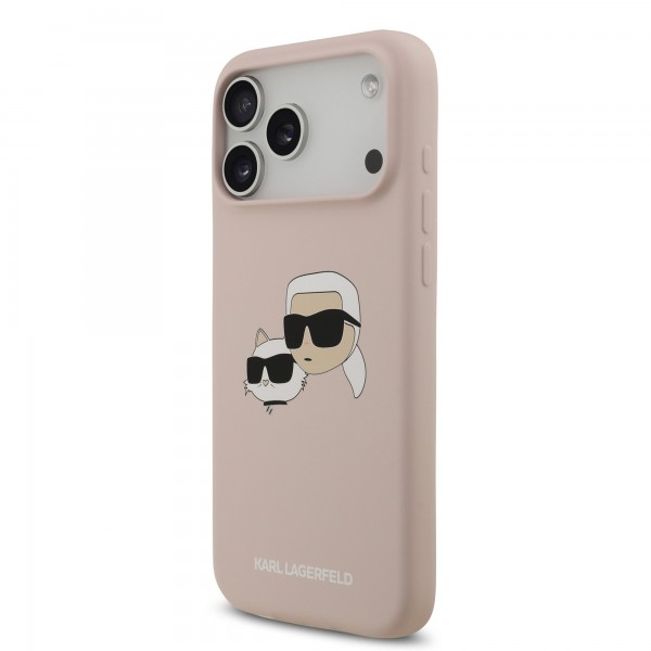 Karl Lagerfeld iPhone 17 Pro Max Hülle Case MagSafe Silikon Karl Choupette Heads Rosa
