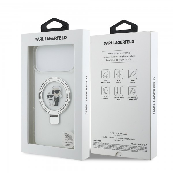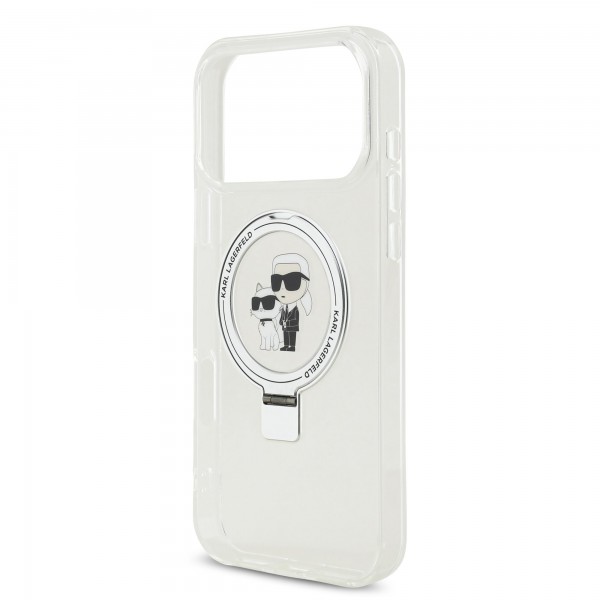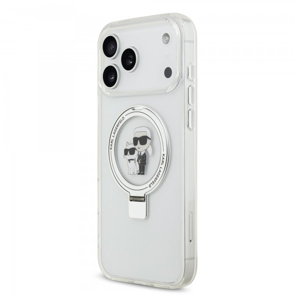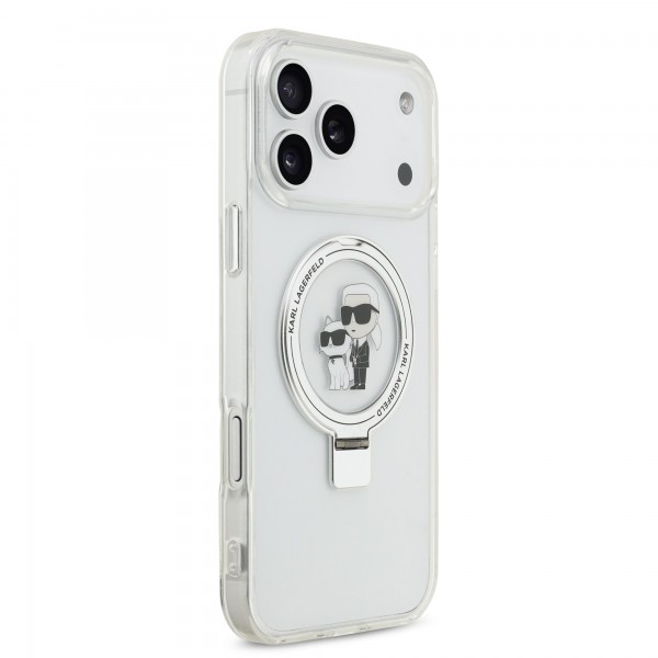 Karl Lagerfeld iPhone 17 Pro Max Hülle Case Ring Stand Karl Choupette MagSafe Weiß