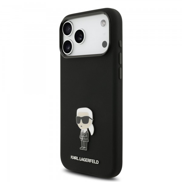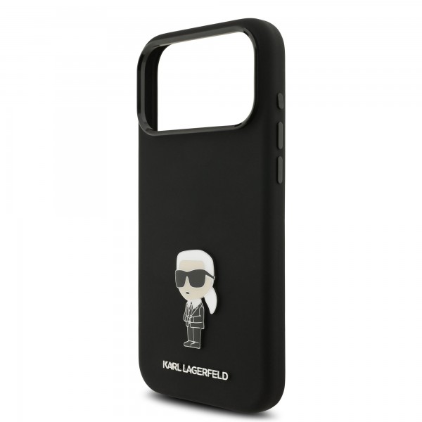 Karl Lagerfeld iPhone 17 Pro Max Hülle Case Silikon Metal Ikonik Schwarz