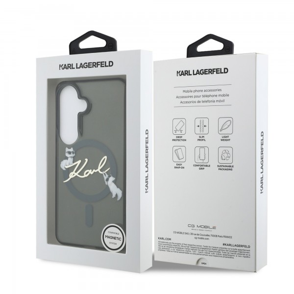 Karl Lagerfeld Samsung S26 Hülle Case Choupette Karl Script Magnetic Schwarz