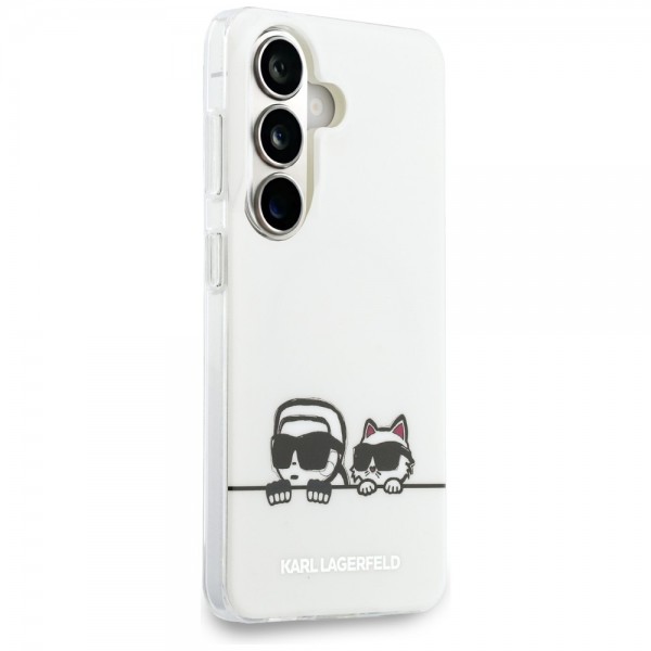 Karl Lagerfeld Samsung S26 Hülle Case Peekaboo MagSafe Weiß. Die IML Karl & Choupette Peekaboo MagSafe-Serie ist die ideale Lösung für alle, die für ihr Smartphone eine Harmonie zwischen Funktionalität und außergewöhnlichem Stil suchen. Diese einzigartige Kollektion bietet soliden Schutz und sorgt nicht nur für die Sicherheit des Geräts, sondern verleiht ihm auch einen unverwechselbaren Charakter und zieht mit seinem einzigartigen Design die Aufmerksamkeit auf sich.