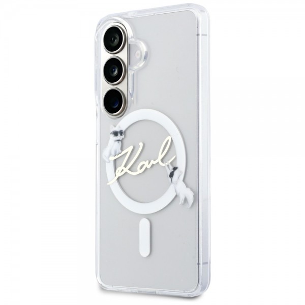 Karl Lagerfeld Samsung S26+ Plus Hülle Case KC Script MagSafe Transparent. Exklusive Kollektion von Schutzhüllen - Karl Lagerfeld Choupettes Karl Script MagSafe. Die einzigartige Serie von Etuis wurde für Frauen geschaffen, die es lieben zu glänzen, zu glänzen, sich von der Masse abzuheben, sich gerne luxuriös zu fühlen und auszusehen.