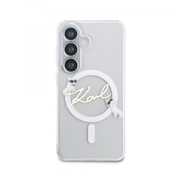 Karl Lagerfeld Samsung S26 Ultra Hülle Case Choupette Karl Script Magnetic Transparent. Die magnetische Rückseite mit Karl Lagerfeld IML Choupette Karl Script Logo ist das perfekte Accessoire für Ihr Smartphone und Ihr Outfit – Funktionalität und Stil vereint.