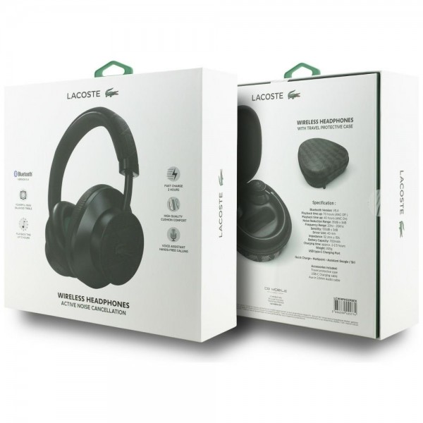 Lacoste Bluetooth Kopfhörer Nomogramme Hybrid ANC Schwarz. Der Lacoste Nomogramme LH02 Hybrid ANC vereint moderne Technologie mit zeitloser französischer Eleganz. Die Kollektion besticht durch ein dezentes Nomogramme-Muster und ein edles schwarzes Finish. Jedes Detail – vom weichen Kopfbügel bis zum präzise gefertigten Logo – unterstreicht den luxuriösen Charakter des Kopfhörers. Er ist nicht nur ein Audioprodukt, sondern ein Statement für Stil und Ästhetik im Alltag.