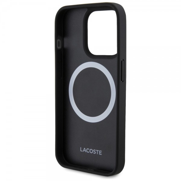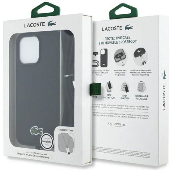 Lacoste iPhone 15 Pro Max Hülle Case Iconic Petit Pique Crossbody Cord MagSafe Schwarz