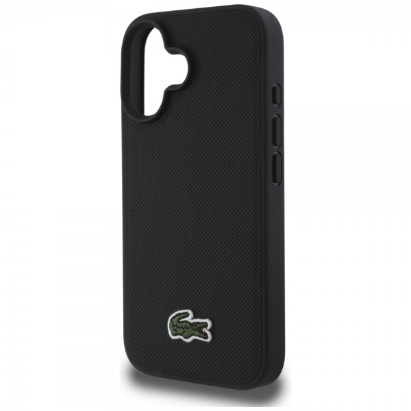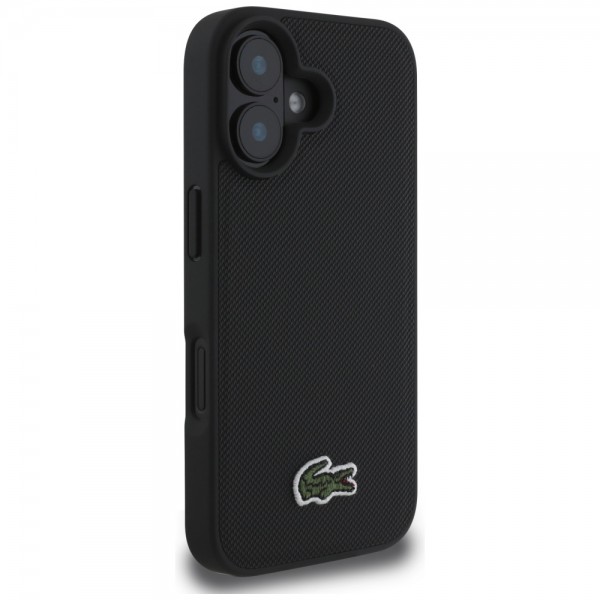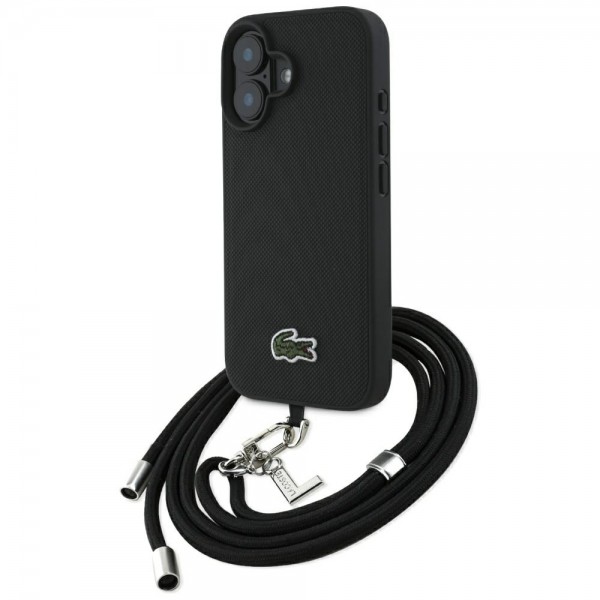 Lacoste iPhone 16 Hülle Case Iconic Petit Pique Crossbody Cord MagSafe Schwarz