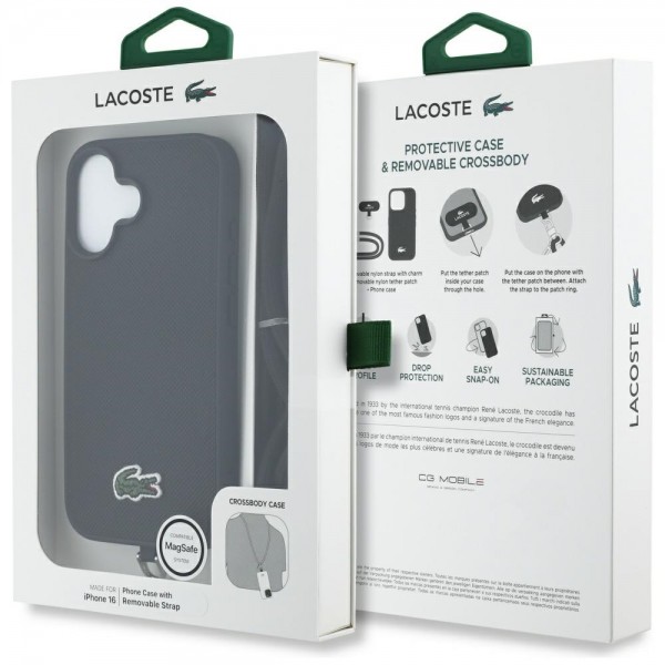 Schnellsuche Lacoste iPhone 16 Hülle Case Iconic Petit Pique Crossbody Cord MagSafe Schwarz