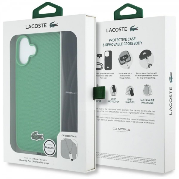 Lacoste iPhone 16 Plus Hülle Case Iconic Petit Pique Crossbody Cord MagSafe Grün