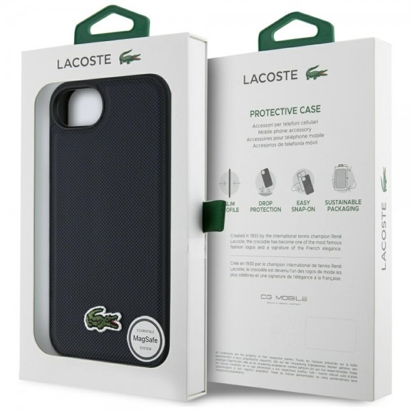 Lacoste iPhone 16e / 17e Hülle Case Iconic Petit Pique Woven Logo MagSafe Blau