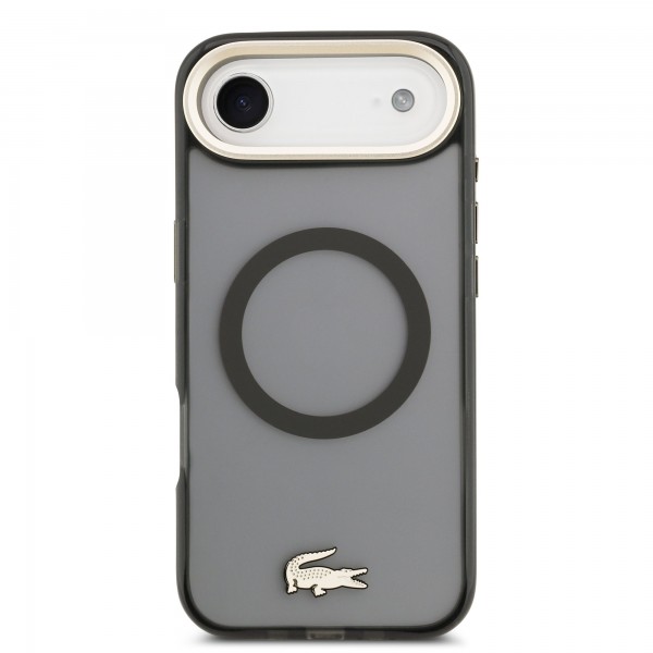 Lacoste iPhone 17 Air Hülle Case Frosted Finish Gold Logo MagSafe Schwarz