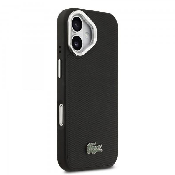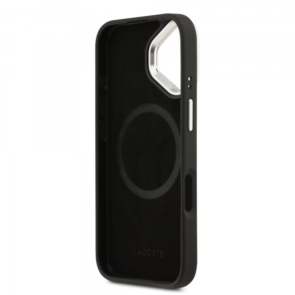 Lacoste iPhone 17 Hülle Case Iconic Petit Pique Camera Stand MagSafe Schwarz