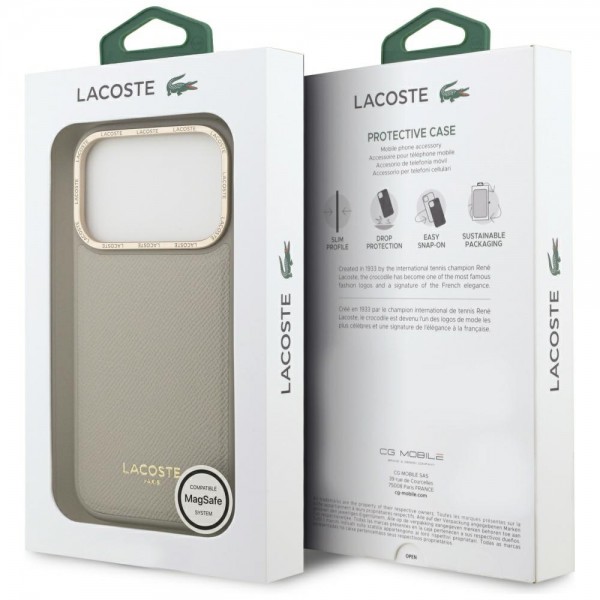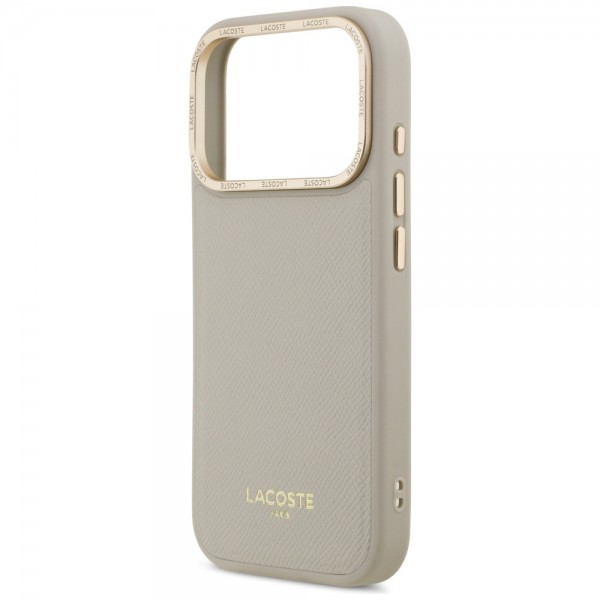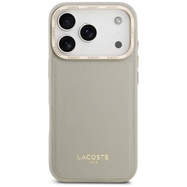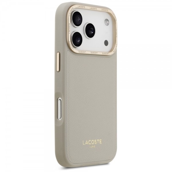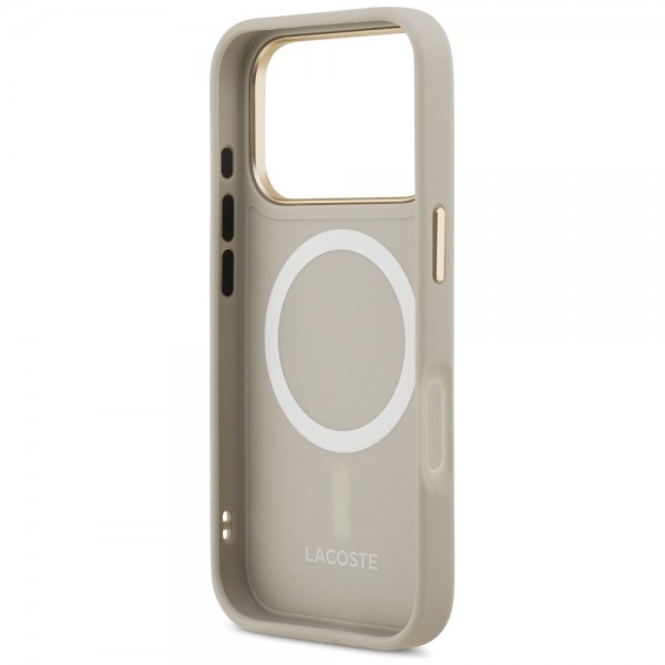 Lacoste iPhone 17 Pro Hülle Case Champs Elysees Gold Logo MagSafe Taupe