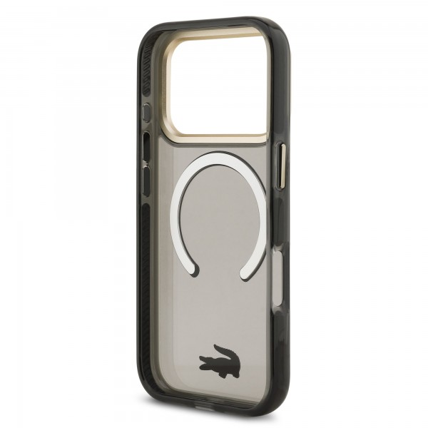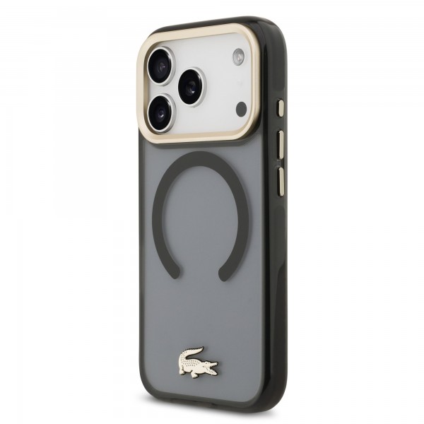 Lacoste iPhone 17 Pro Hülle Case Frosted Finish Gold Logo MagSafe Schwarz