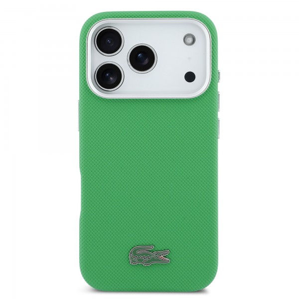 Lacoste iPhone 17 Pro Hülle Case Iconic Petit Pique Metal Logo MagSafe Grün