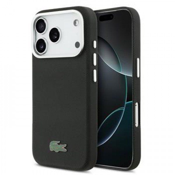 Lacoste iPhone 17 Pro Hülle Case Iconic Petit Pique Metal Logo MagSafe Schwarz