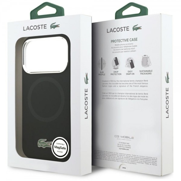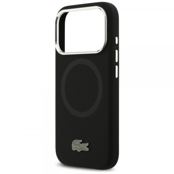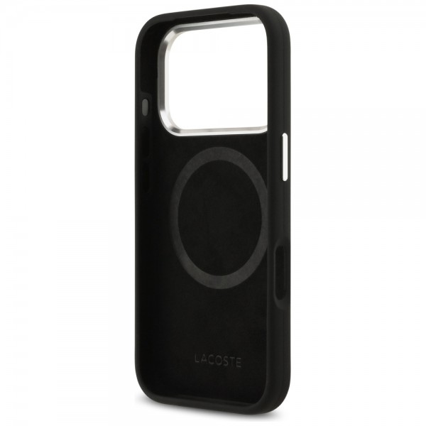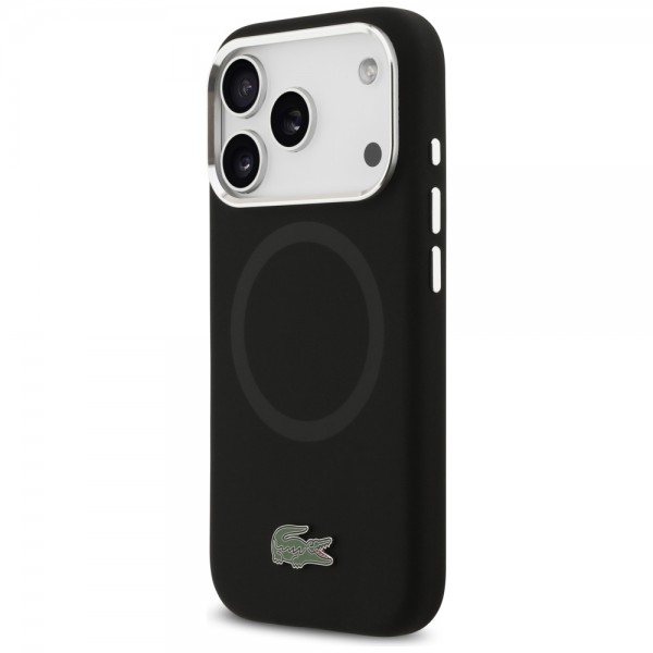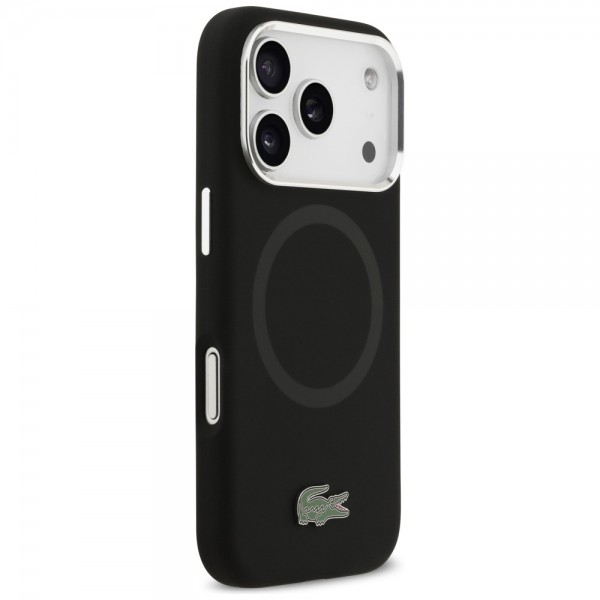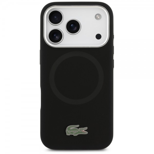 Lacoste iPhone 17 Pro Hülle Case Silikon Metal Logo Frame MagSafe Schwarz