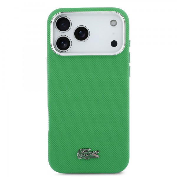 Lacoste iPhone 17 Pro Max Hülle Case Iconic Petit Pique Metal Logo MagSafe Grün