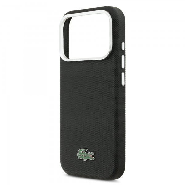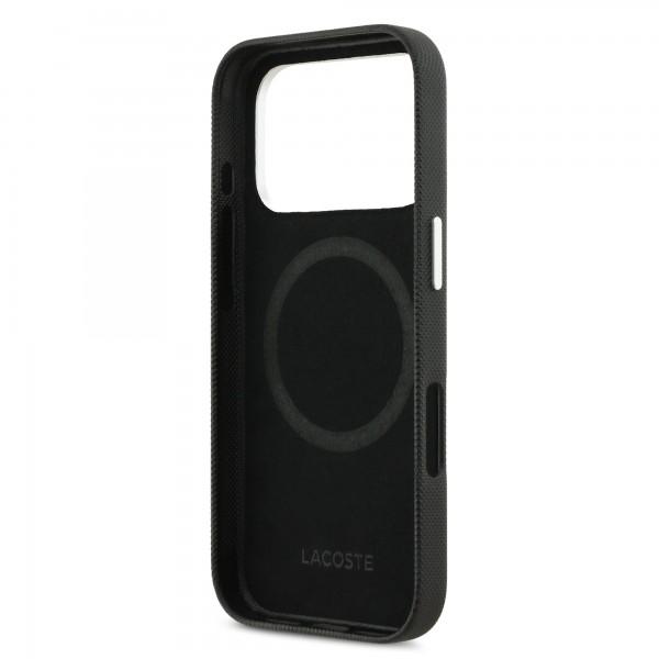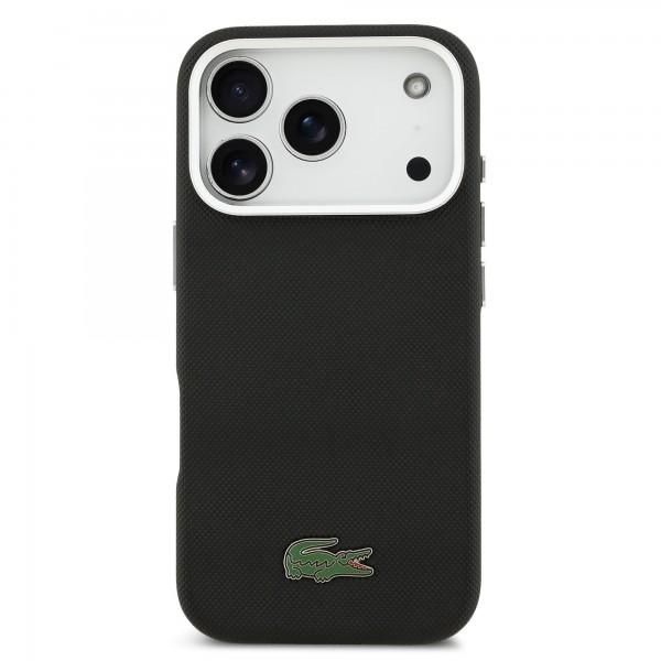 Lacoste iPhone 17 Pro Max Hülle Case Iconic Petit Pique Metal Logo MagSafe Schwarz