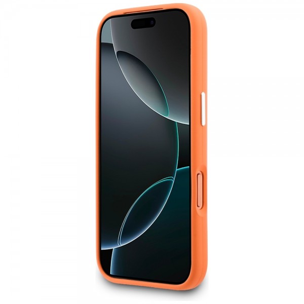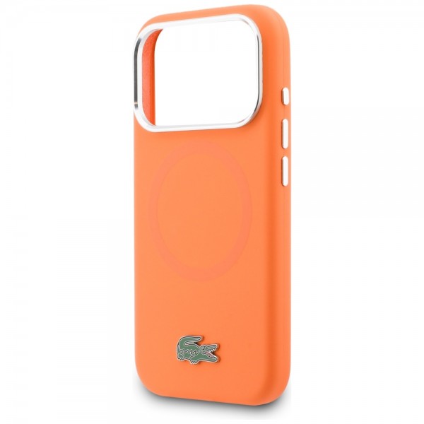 Lacoste iPhone 17 Pro Max Hülle Case Silikon Metal Logo Frame MagSafe Orange