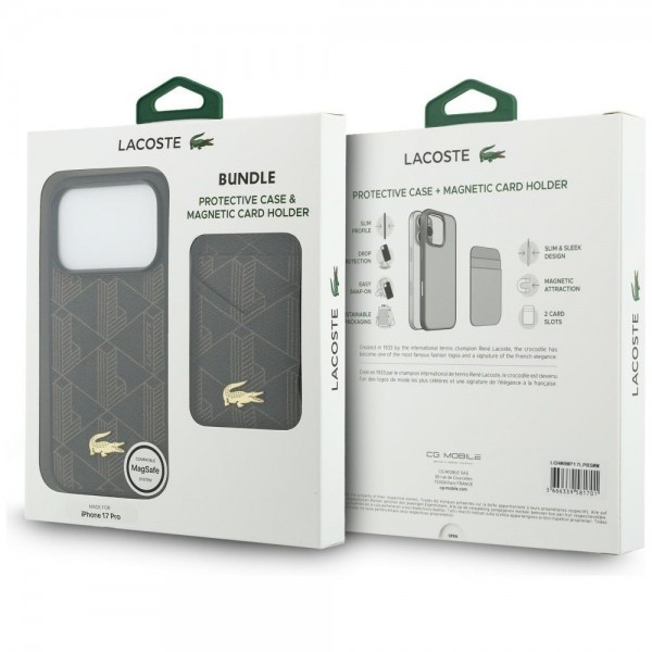 Lacoste iPhone 17 Pro Set Hülle Case + Wallet Card Holder Blend MagSafe Braun