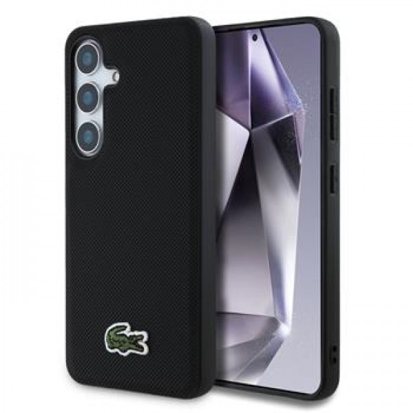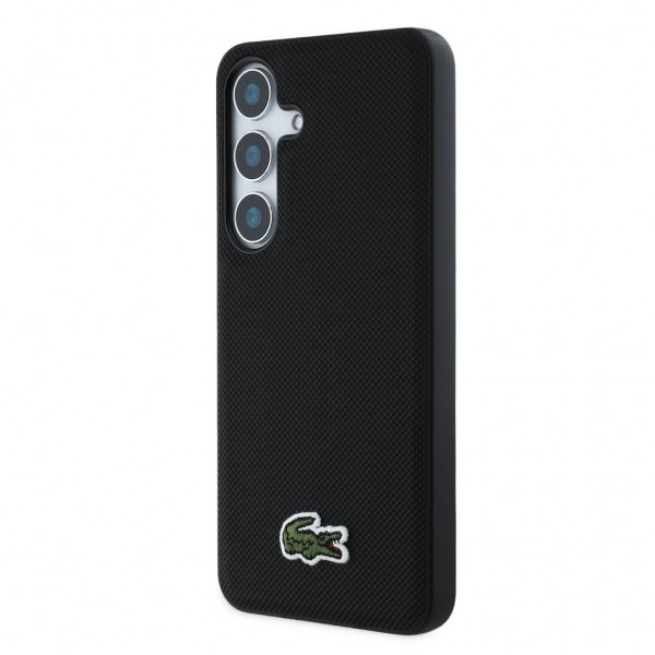 Lacoste Samsung S25 Hülle Case MagSafe Iconic Petit Pique Woven Schwarz