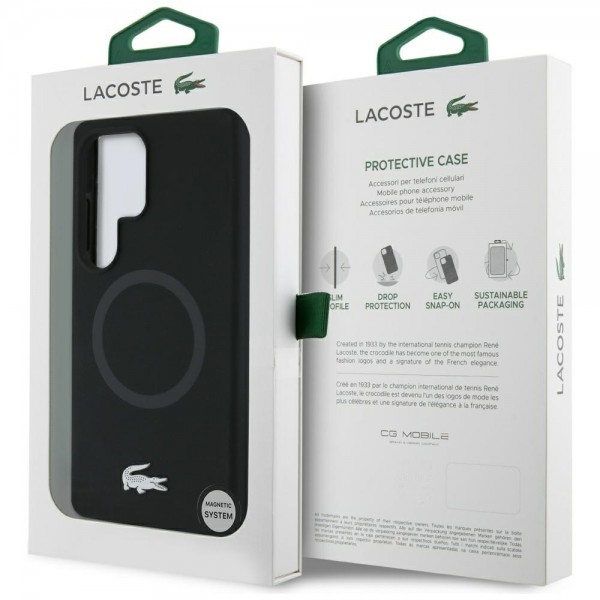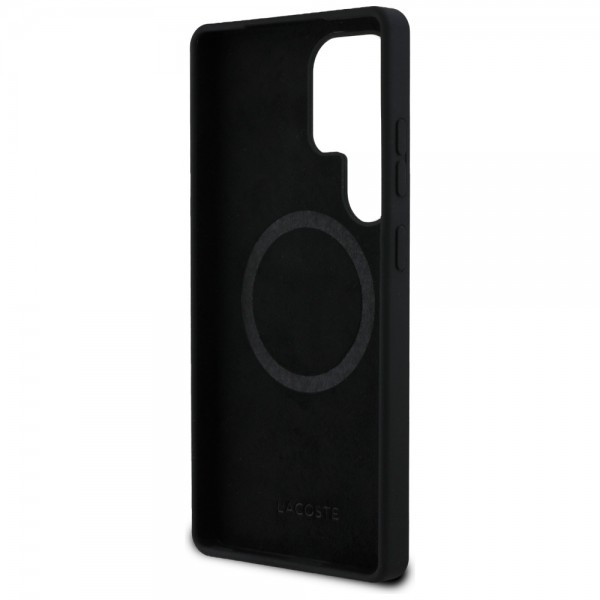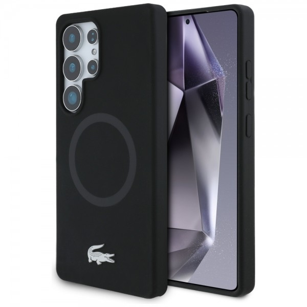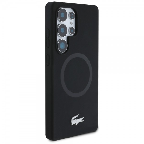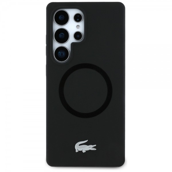 Lacoste Samsung S25 Ultra Hülle Case Silikon Metall Croc MagSafe Schwarz