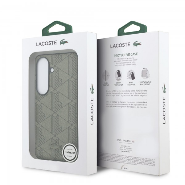 Lacoste Samsung S26 Hülle Case Blend Monogram Magnetic Khaki