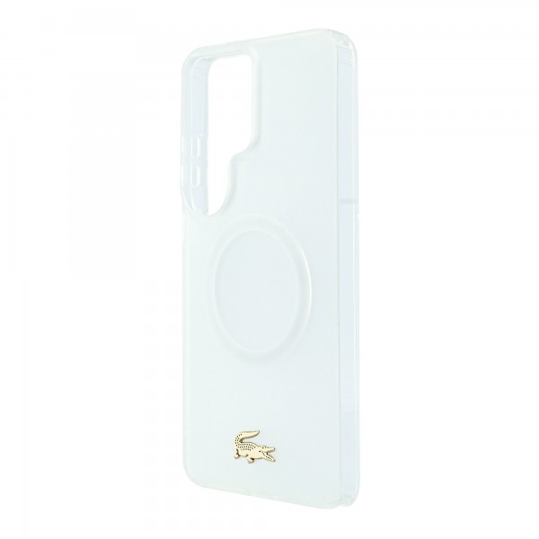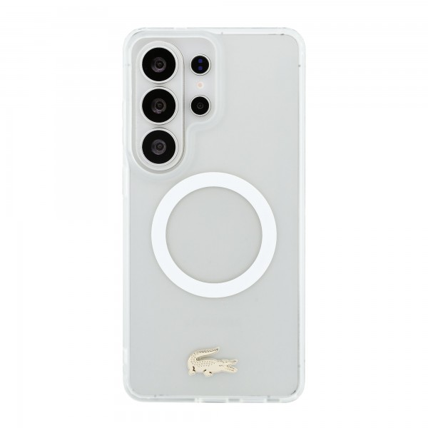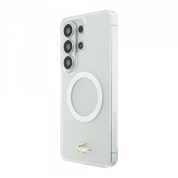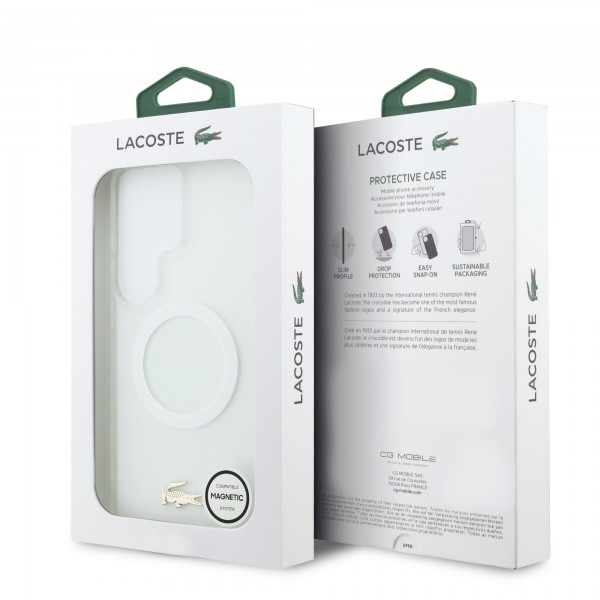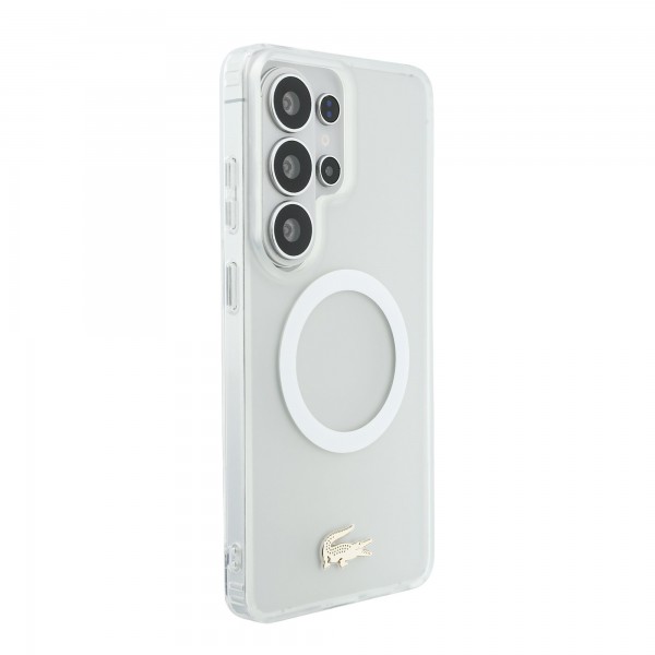 Lacoste Samsung S26 Ultra Hülle Case Frosted Finish Gold Logo Magnetic Weiß