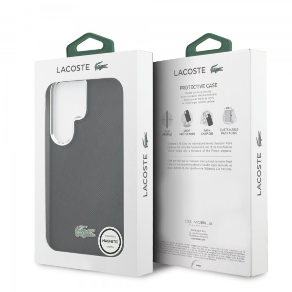 Lacoste Samsung S26 Ultra Petit Pique Hülle Case Metal Logo Magnetic Schwarz