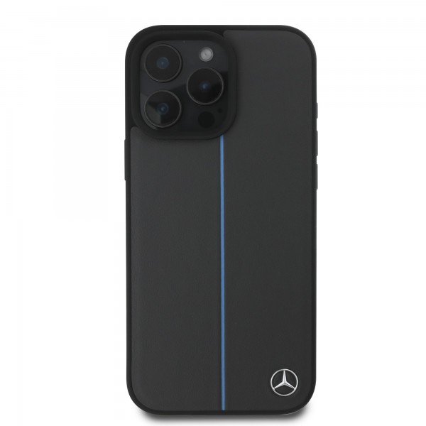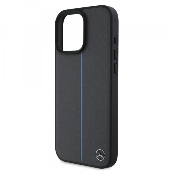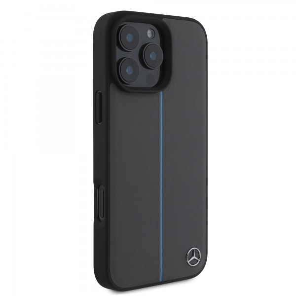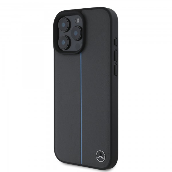 Mercedes iPhone 16 Pro Hülle Case Echtleder Blue Stripe MagSafe Grey