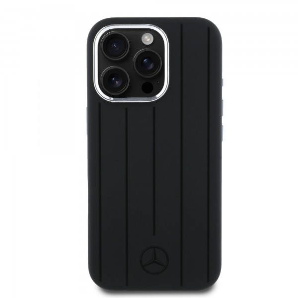 Mercedes iPhone 16 Pro Hülle Case Silicon Stripes Pattern MagSafe Schwarz