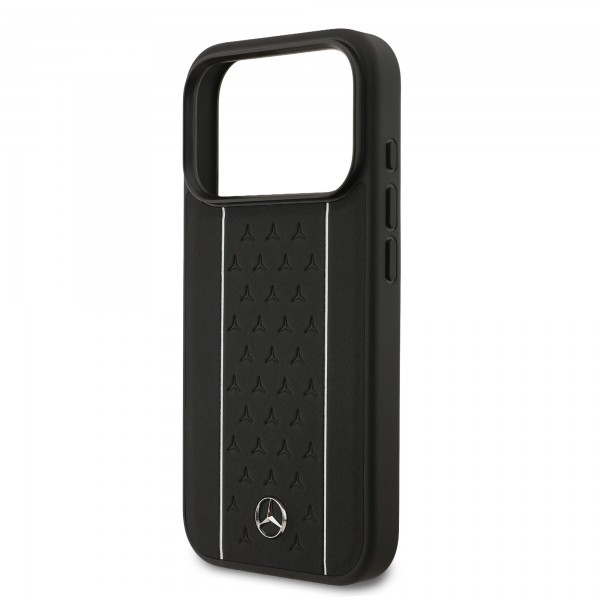 Mercedes iPhone 17 Pro Echtleder Hülle Case Star Pattern MagSafe Schwarz
