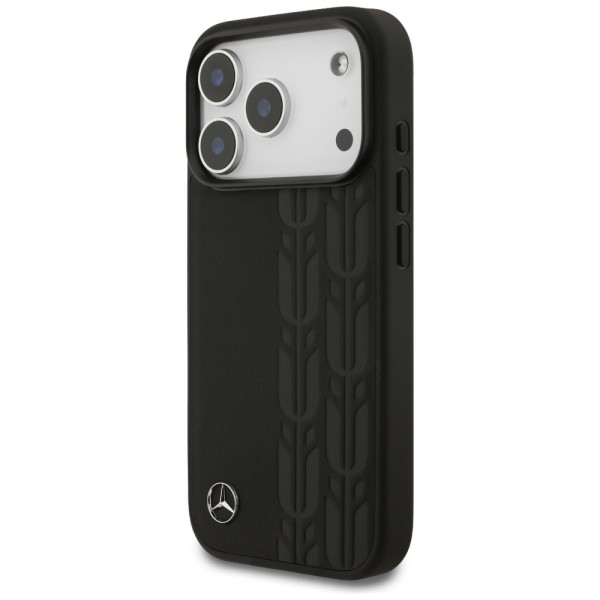 Mercedes iPhone 17 Pro MagSafe Hülle Echtleder Case Laurel Schwarz. Die exklusive Mercedes-Benz Hülle aus der Leather Laurel Leaves MagSafe Kollektion ist eine Hülle von außergewöhnlicher Qualität, signiert von einem der bekanntesten Automobilkonzerne der Welt. Sie ist die perfekte Wahl für alle Nutzer von Geräten mit MagSafe-Technologie.