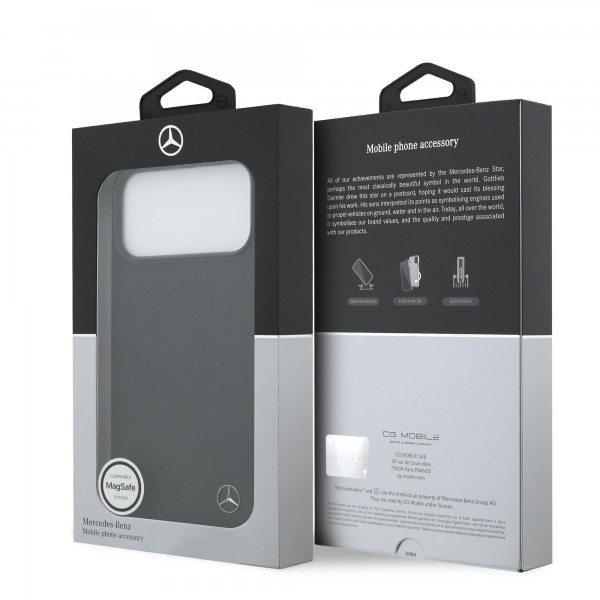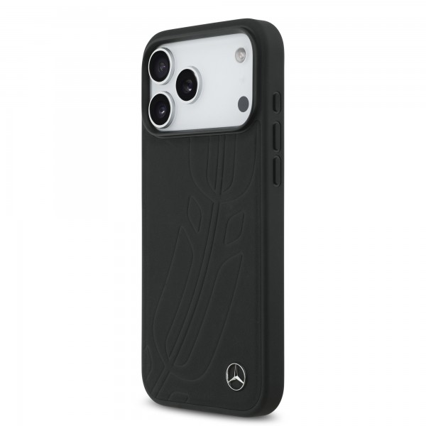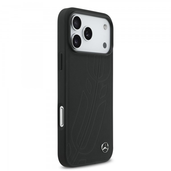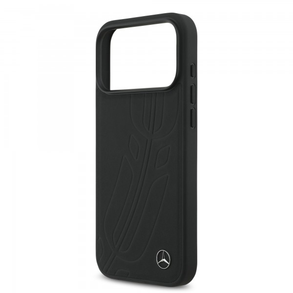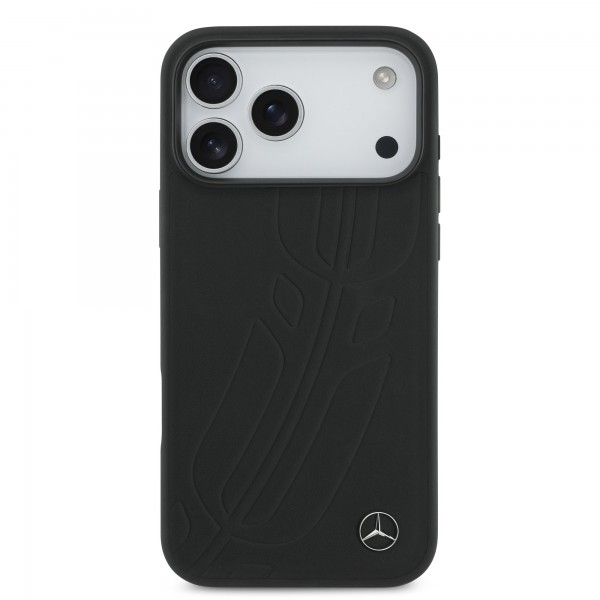 Mercedes iPhone 17 Pro Max Echtlede Hülle MagSafe Case Large Lauer Leaves Black