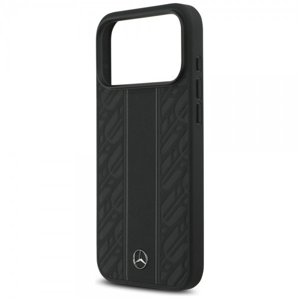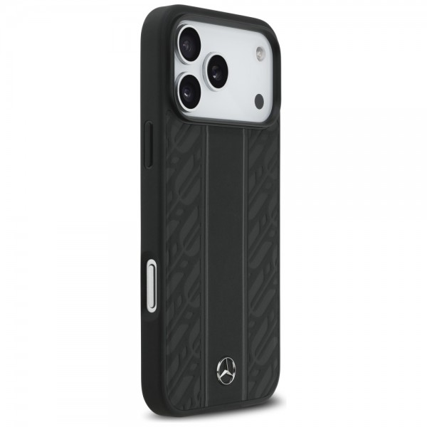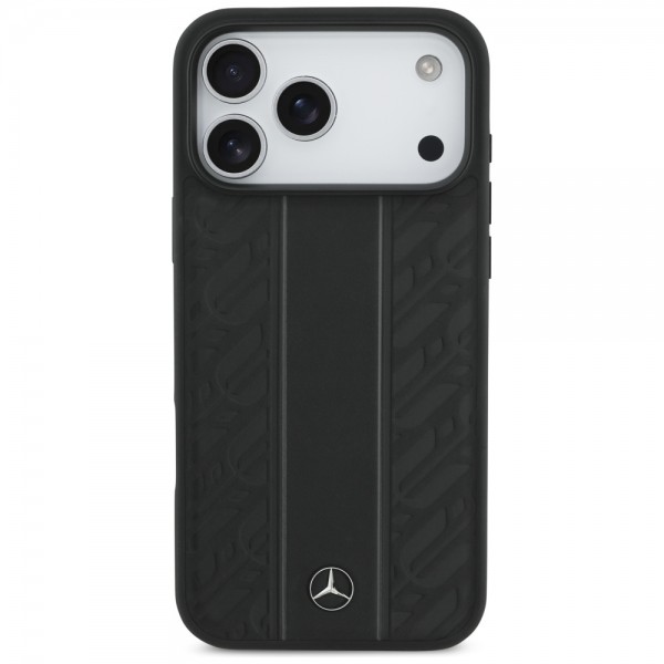 Mercedes iPhone 17 Pro Max Hülle Case Echtleder Laurel Leaves Stripes MagSafe Schwarz