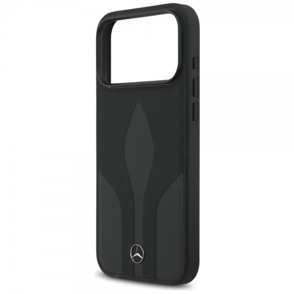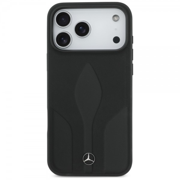 Mercedes iPhone 17 Pro Max Hülle Case Echtleder The Move MagSafe Schwarz. Die Schutzhüllen dieser Kollektion vereinen Luxus, Funktionalität und moderne Technologie. Sie bestehen aus echtem Leder mit matter Oberfläche, verziert mit einem dezenten Prägemuster und dem Mercedes-Benz Markenlogo.