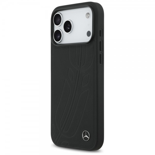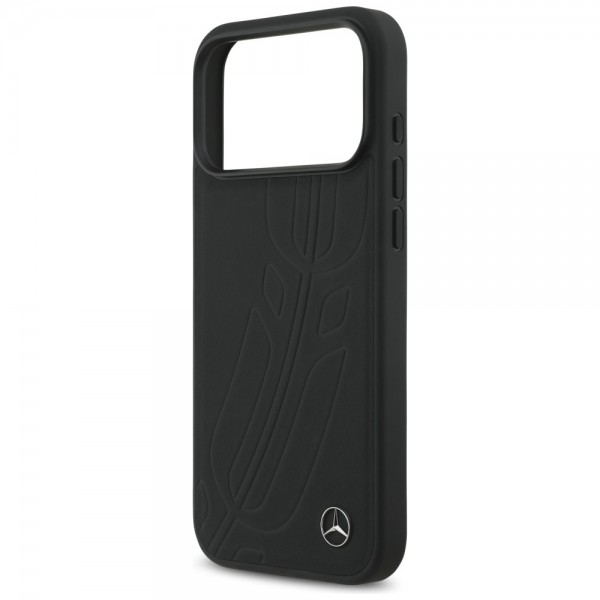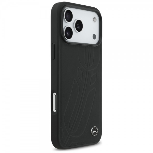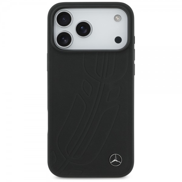 Mercedes iPhone 17 Pro Max MagSafe Hülle Echtleder Case Blatt Schwarz