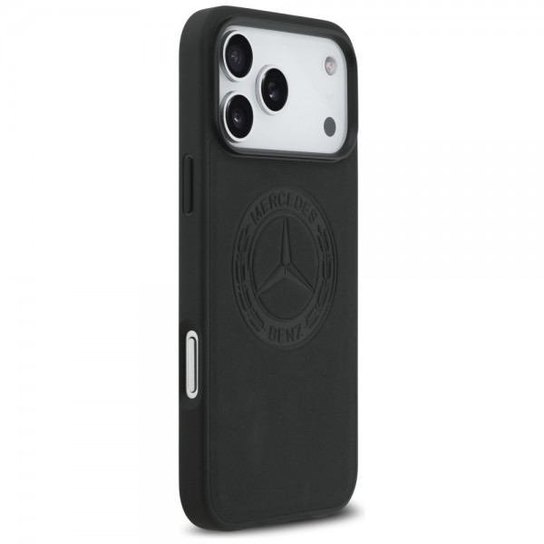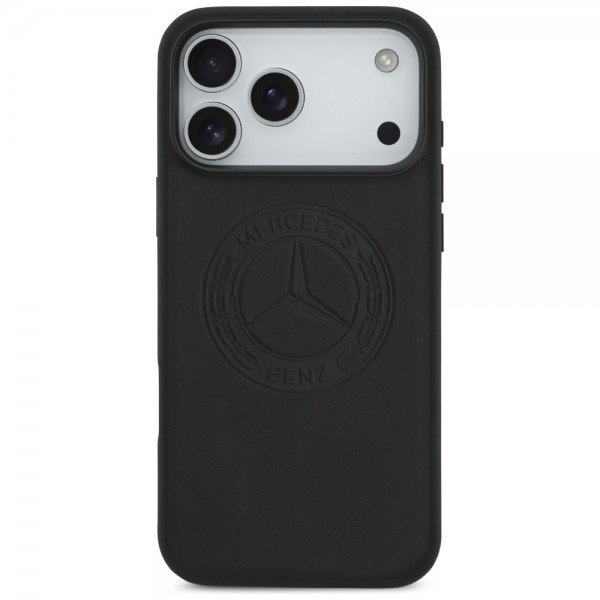Mercedes iPhone 17 Pro Max MagSafe Hülle Echtleder Case Vintage Logo Schwarz