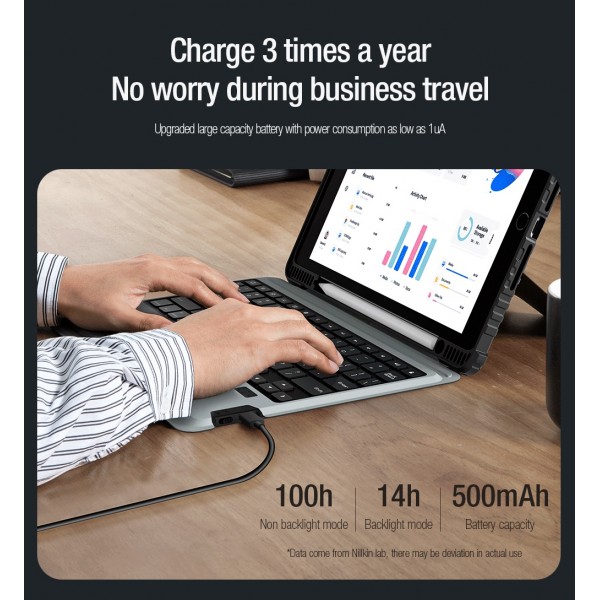 Schnellsuche Nillkin iPad 10.2 2019 / 2020 / 2021 Tablet Tasche Tastatur Book Case Backlit