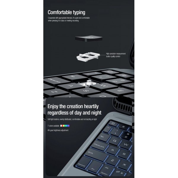 Das Cover bietet Ihnen eine hochwertige kabellose Tastatur mit geringem Hub, leisen und langlebigen Schaltern und präziser Tastenprofilierung für höchsten Tippkomfort.
