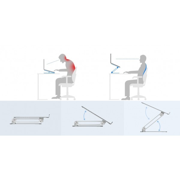 Mit dem Ständer können Sie Ihren Laptop in jeder beliebigen Position auf dem Tisch platzieren. Ob Sie ihn allein oder als zweiten Monitor verwenden, dieser Ständer ermöglicht Ihnen die exakte Positionierung.