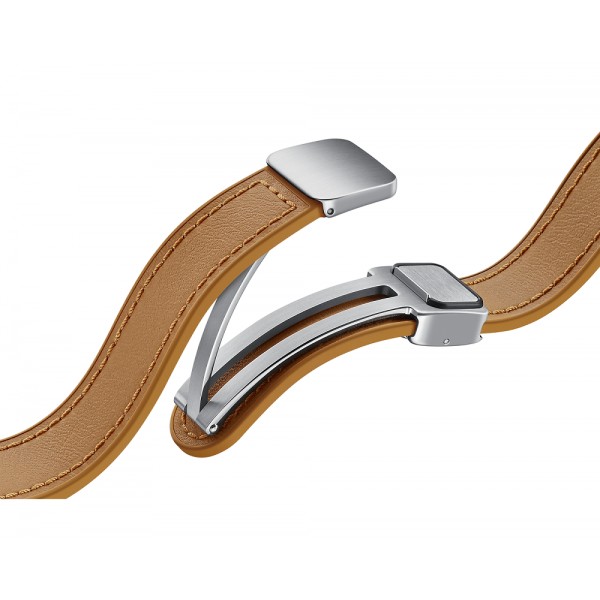 Das Hybrid-Lederarmband besticht durch seine hochwertige Verarbeitung aus Leder außen und Fluorelastomer innen, das schweißresistent ist.