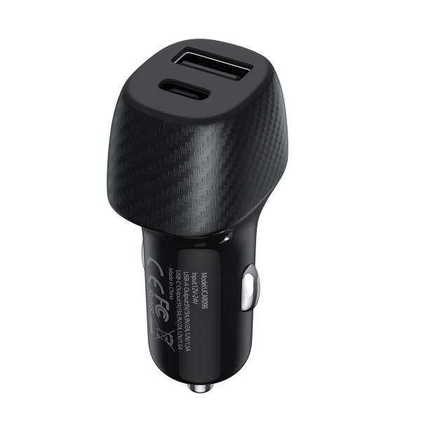 UNIQ 2.4A 36 Watt Dual Port Fast Car Charger + Type-C USB Schwarz